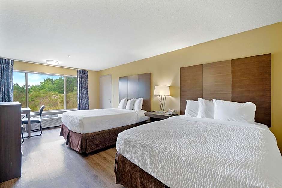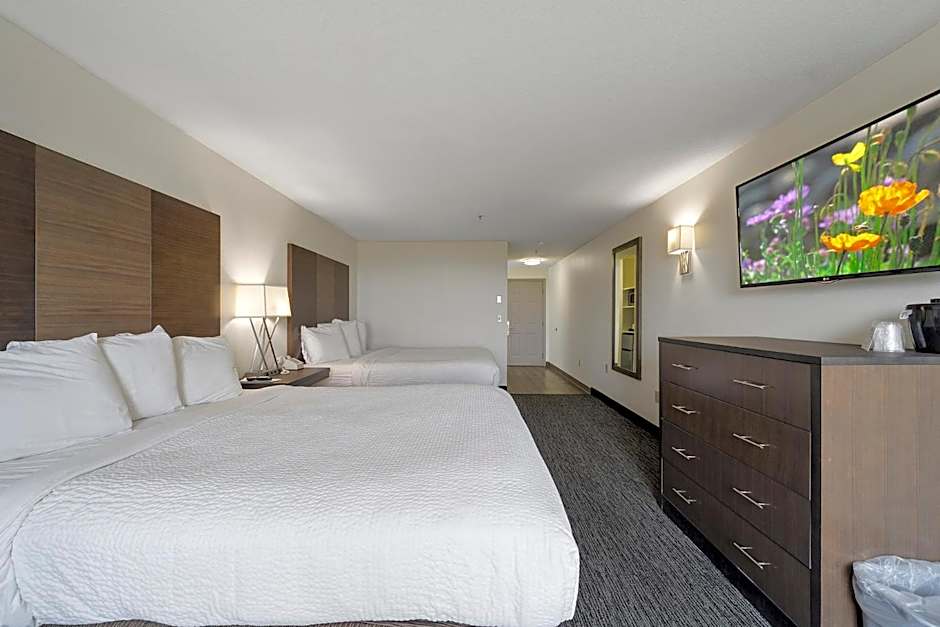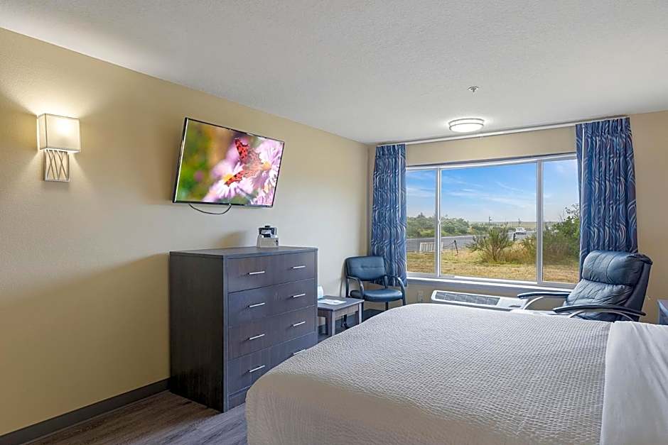 This single queen room: has a 47" flat-screen TV, desk, refrigerator, microwave, and coffee maker.